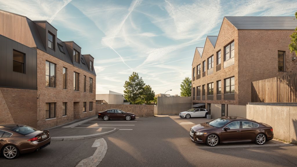 The design incorporated 10 external parking spaces, complemented by landscaped green areas and private gardens. The project aimed to provide appealing homes for families and local professionals.